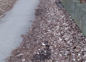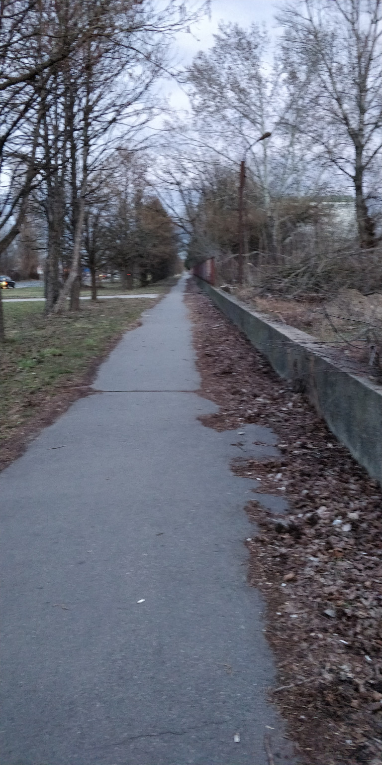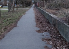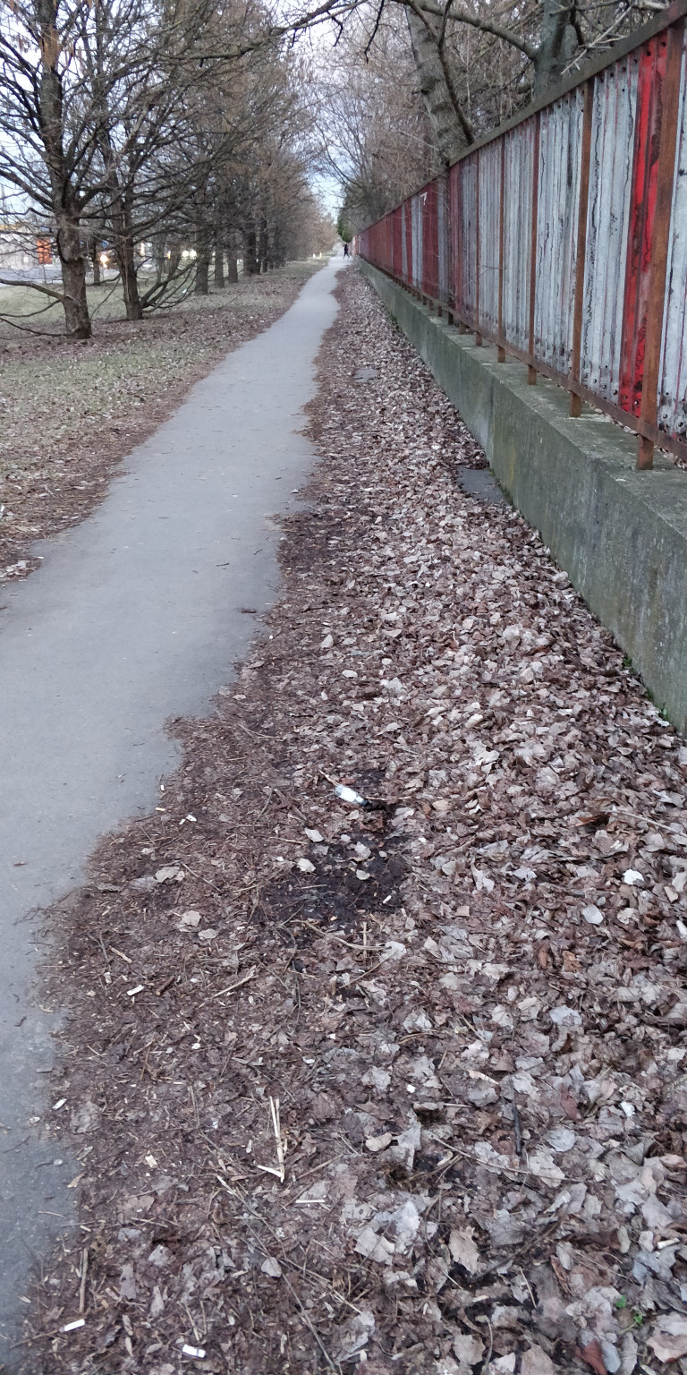 Évek alatt összegyűlt falevelek nincsenek eltakarítva a járdáról, így csökkentve a használatba vehető felületet. A helyzetet jól mutatja, hogy a félig elrohadt levelek között már facsemeték nőnek.