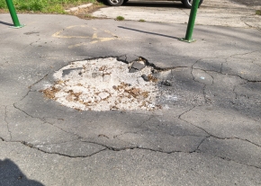 Nem tudom, egyáltalán használatban van-e még ez a sínszakasz. Ha nem, kérem, hogy bontsák el az úttestet keresztező részen, ha pedig igen, kérem, hogy hozzák egy szintbe az útburkolatot a sínnel. Amíg nem történik meg a javítás, rakjanak ki valamilyen jól látható figyelmeztetést.
