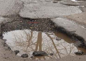 Az átjáró mindkét oldalán a sínek előtt az autók kerekének vonalában megsüllyedt az útburkolat.