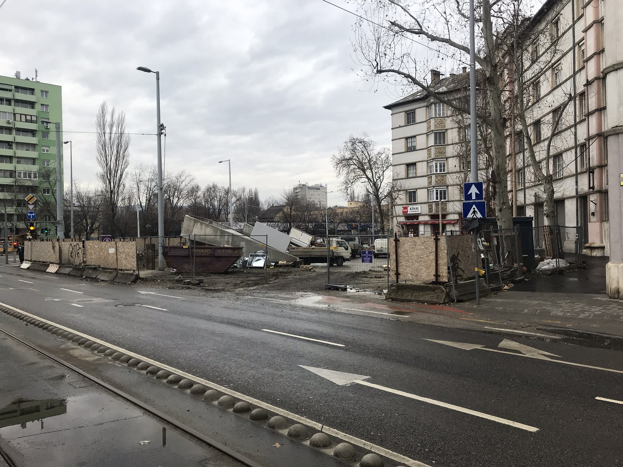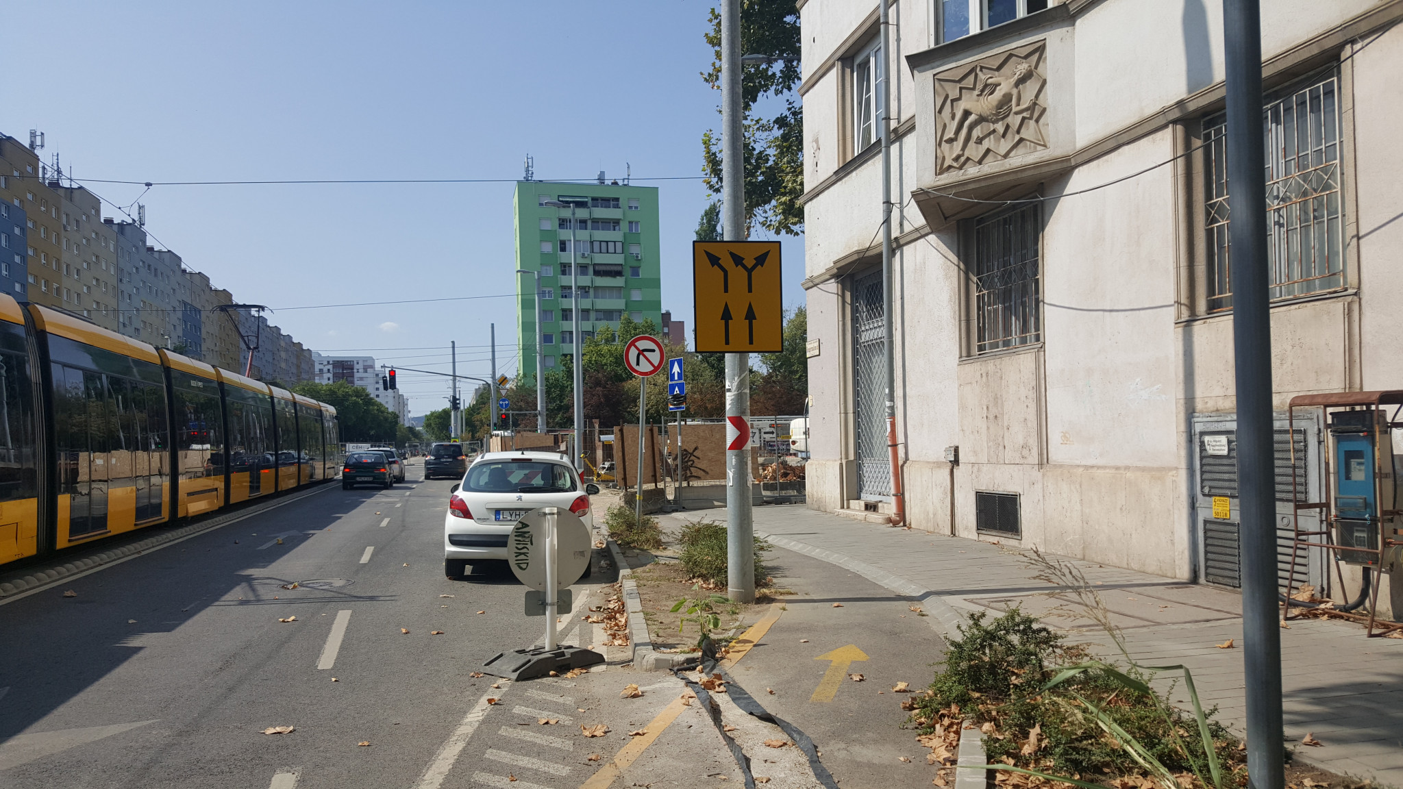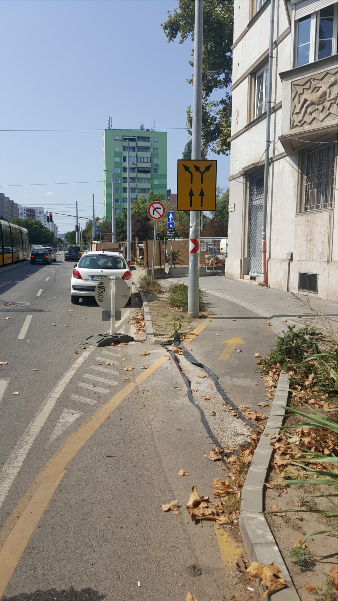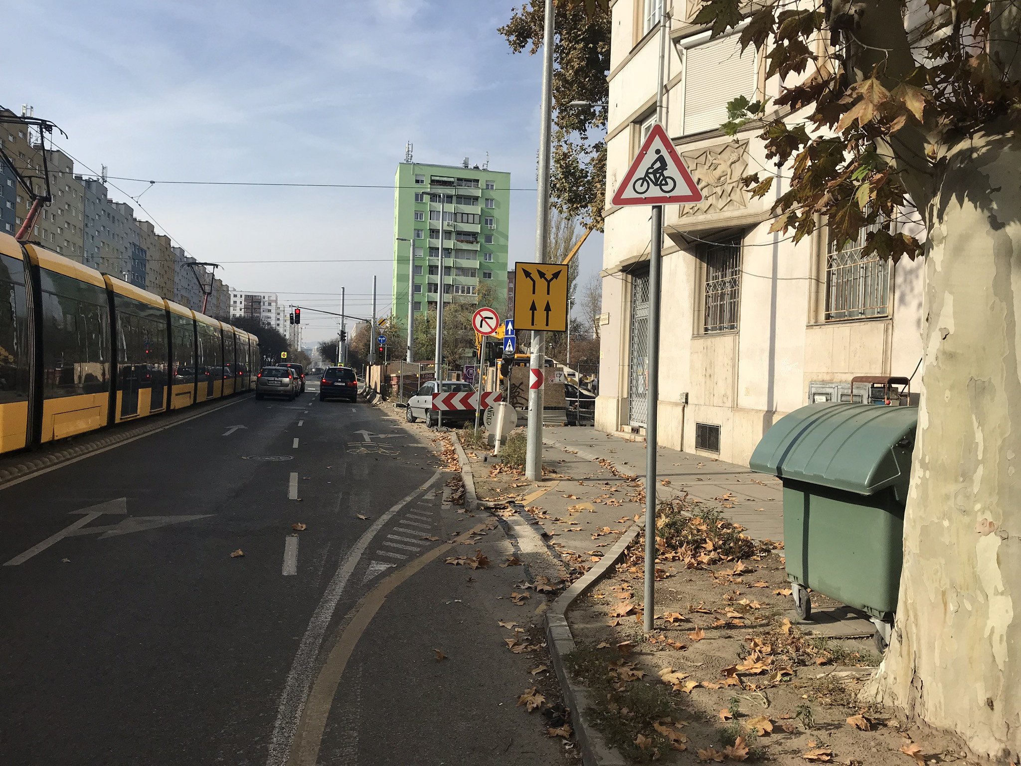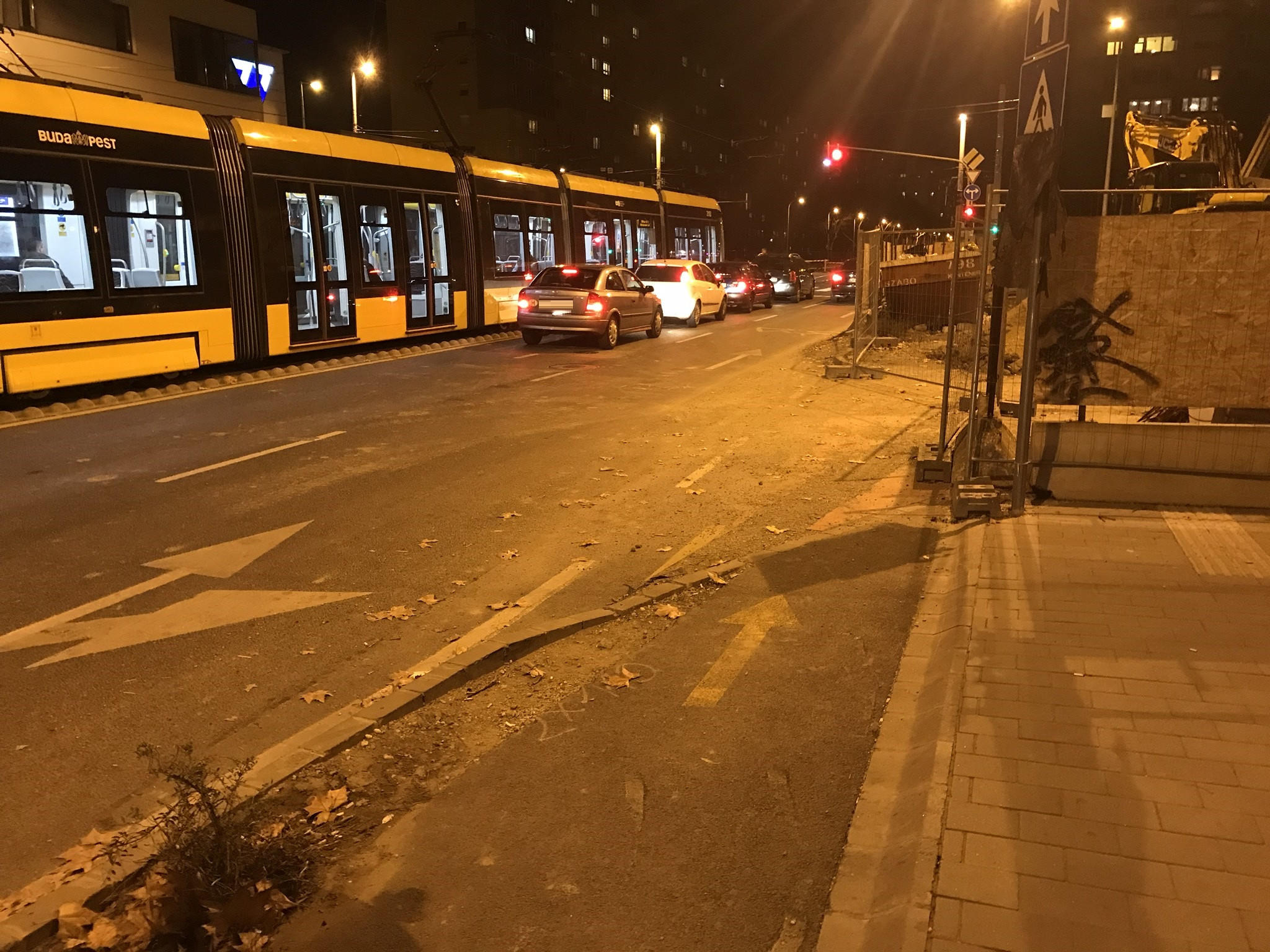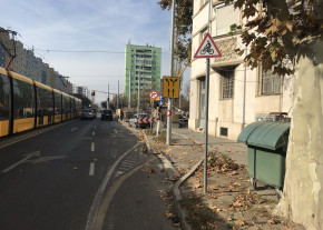 A Hengermalom úttal párhuzamos kerékpársáv mindenféle figyelmeztetés és terelés nélkül szűnik meg a sarkon folyó beruházás miatt. Ez veszélyes és egyeben elfogadhatatlan is.
