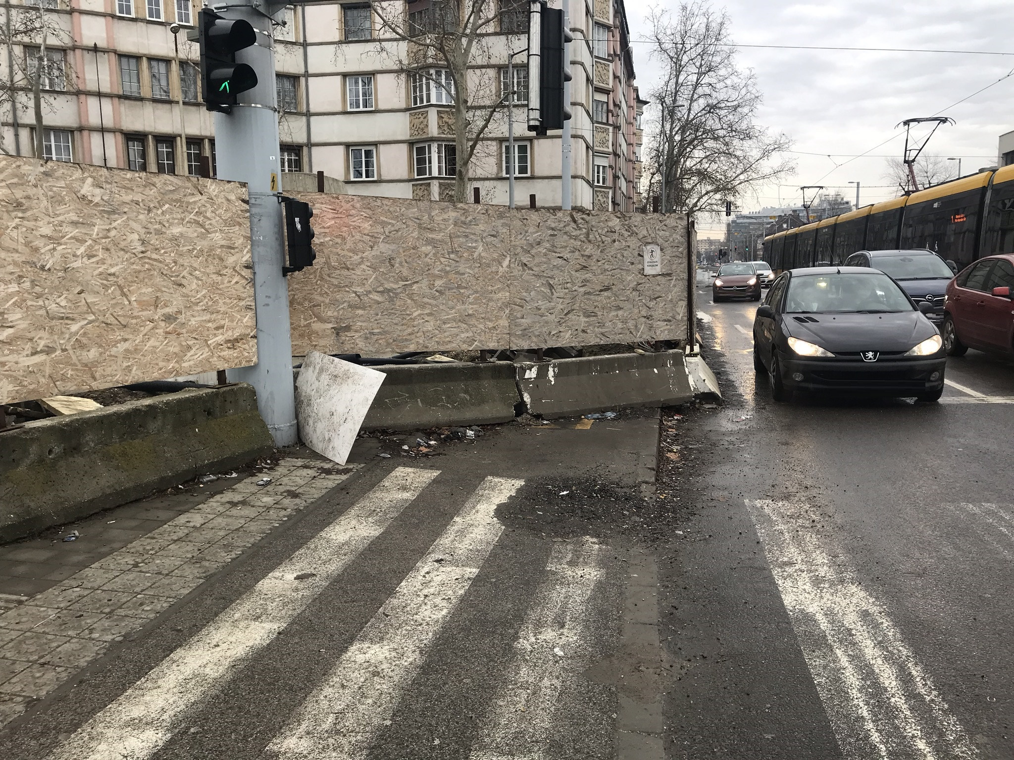 A Hengermalom úton a járdát nem Társaságunk korlátozta el, az 1-es villamos építéshez tartoztóan...