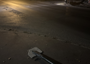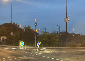 A nyáron itt még volt egy tükör, ami segített belátni a kanyart, de valaki véletlenül vagy szándékosan kidöntötte. A kidöntött tükör egy ideig a földön hevert, majd eltűnt. Szükség lenne errre! A helyét most a karó jelzi.