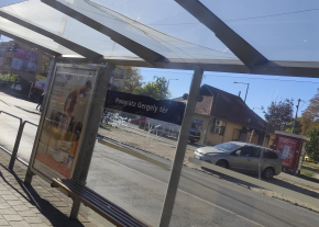 A 80-as troli Pongrátz Gergely téri megállójában teljesen össze vannak karcolva a váró üvegei.
