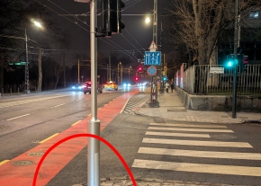 A Mogyoródi út és a Zászlós utca sarkán az épületen valamilyen felújítási munkálatokat végeznek, ehhez a képen látható helyre konténert helyeztek, és lezárták a teljes szélességben járdaszakszt, így csak a kerékpár út maradt szabadon. Mindkét irányból helyeztek ki "Úton folyó munka" és "Útszűkület " táblakat. Az egyik irányból van "Kerékpárút vége" tábla a másikból én nem láttam ilyet, illetve nincsen kihelyezve a lezárás után "Kerékpárút" tábla sem, szóval jogilag megszűnik teljesen onnantól.