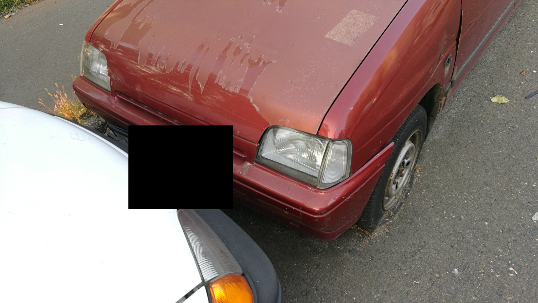 A képen látható daewoo tico típusú autó a IV. kerületben a Laborfalvi Róza utca 13-15 között lakótelepének parkolójában áll kihasználatlanul, leeresztett kerekekkel. A tulajdonos csak a lomjai tárolására használja és más autók helyét foglalja.
