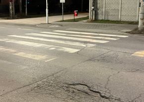 A Róbert Károly körúti felüljáró Lehel út felé vezető oldalán a középső sávban, egész sávra kiterjedő, kikerülhetetlen, mély kátyú tátong, a kép a Google- térképből másolt, júniusi állapotot mutatja, azóta a kátyú sokkal szélesebb és mélyebb lett. Időszerű lenne ennek, és a felüljárón található többi kátyúnak a mielőbbi javítása!