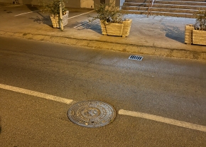 Elcsúszott / tönkrement egy esővízgyűjtő fedele. Kérem, javítsák, cseréljék! Köszönöm!