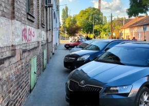 kereszteződésben parkolnak a XV.Neptun utcai lakótelepnél
