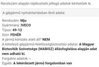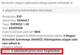 Ügyfélkapun lekérdeztem mind a három jármű adatait, ezekről a képernyőfelvételt is csatolom a bejelentés mellé.