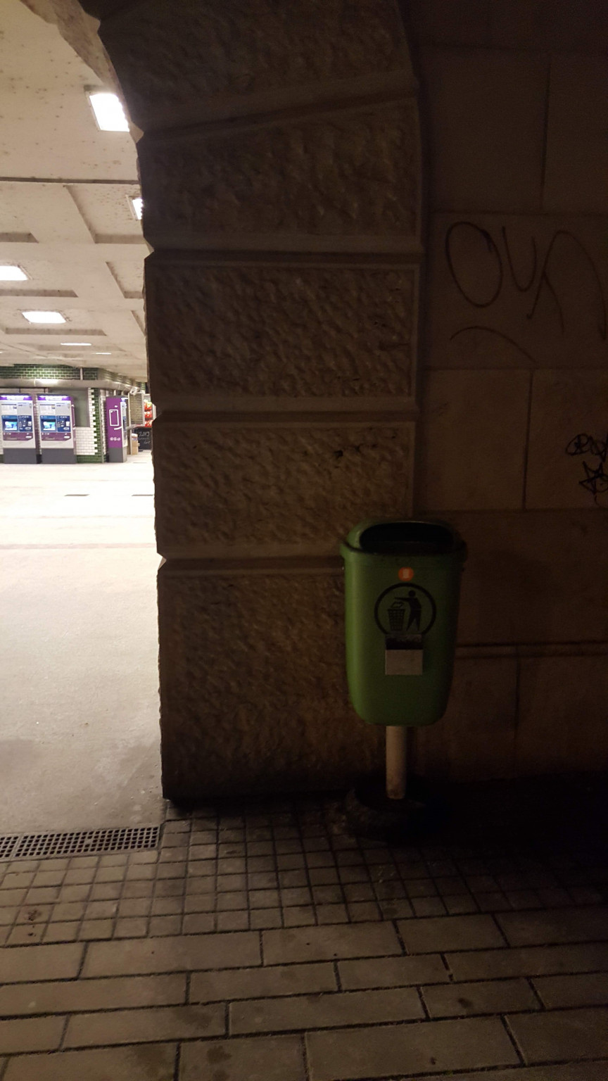 Halkan jegyzem meg, hogy 3 évembe került, míg sikerült elérnem, hogy a Kálvin téri aluljáróban megszűnjön a képen látható állapot és a szemetesek fixen a falra legyenek rögzítve. Remélhetőleg itt is sikerül valami hasonló.