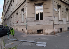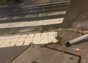 II.kerület, Nagyhíd. A forgalomtechnikai tükör túlságosan lentre van beállítva. Magasabb autóból vagy bringáról pont nem látszik semmi a tükörben, csak a föld látszik benne. A tükör a függőlegessel bezárt szögét csökkenteni kellene egy kicsit. A képen sárgával jelöltem a tükör helyét.