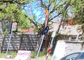 A közúti jelzőtábla oszlopának megfelelő rögzítésére a szükséges intézkedést megtettük, a megvalósulásig szíves türelmét kérjük.