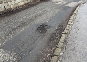 A XII. kerület hatáskörébe tartozó utcában több kis kátyú van. Ideje lenne ezeket szépen körbevágni, és aszfaltkeverőtelepről hozott friss forró aszfalttal kitölteni.