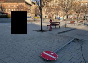 Közlekedési tábla kidőld, javítását kérem! Köszönöm!