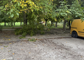 Egy jókora fa kiszáradt a (Bp.3.) Szél utcában. A Raktár utca – Szél utca kereszteződésétől pár méterre.
