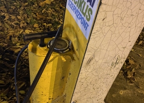 A "közpumpa" rég nem működik, ha felemelem a kart, magától kifúj. Rég így van / régebb is ez volt. Mikor utoljára próbáltam, már a bank őre szólt, hogy kár próbálkozni.
