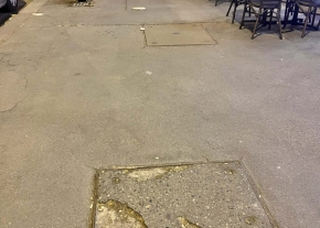 Ferde aknafedél a villamosmegállóban