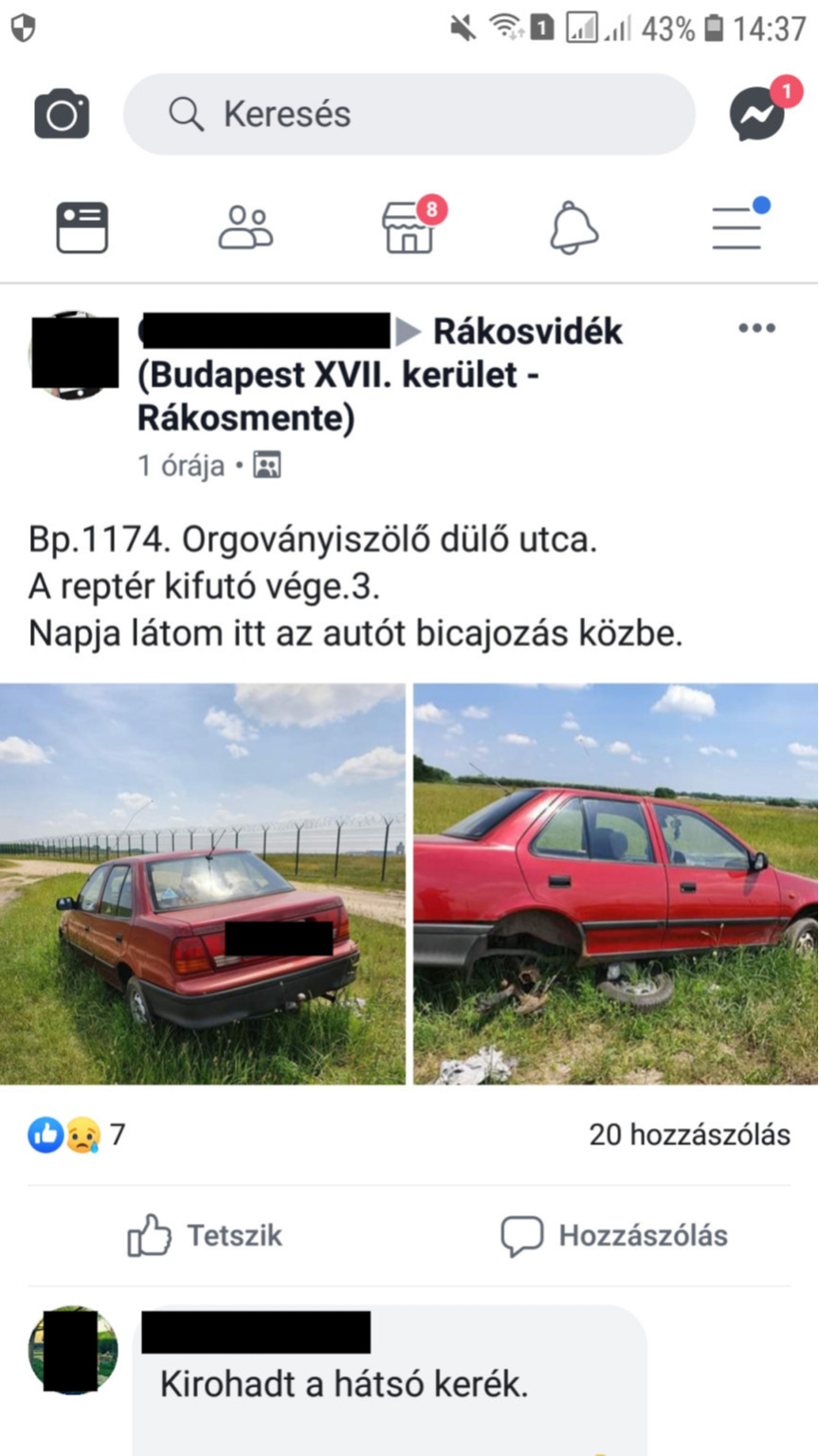 Bejelentésére válaszul tájékoztatjuk, hogy a tárgyi gépjárművet Rákosmente Önkormányzatának felszólítására, a tulajdonosa elszállította a közterületről.