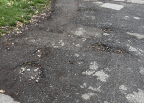 Beszakadt elöttünk az úttest még tavaly nyáron. Önkormányzatunk októberre ígérte a javítást, de nem jöttek a tél folyamán. Gondoltam tavasszal majd ideérnek.