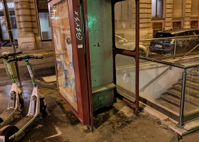 Megrongált telefonfülke - Bajcsy-Zsilinszky út 11