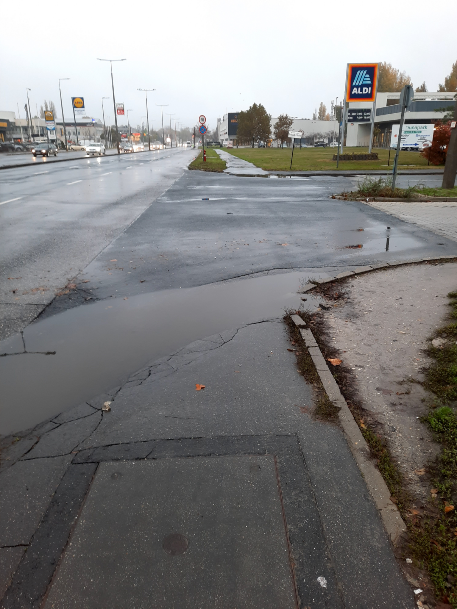Kedves Ügyinéző! Kérném a 11es.út és a Tordalagi PÁL UTCA ( HIVATALOSAN:CZETZ János út a) bejáratnál lévő gyalogosátkelő akadálymentesítését, illetve vízelvezetés megoldását, mert csapadékos időszakban használhatatlan az átkelő. Kérném az átkelő kialakításának felülvizsgálatát biztonsági szempontból. Igaz, hogy a KRESZ előírja a gyalogos forgalom elsőbbségét a kereszteződésnél, azonban ez nem zárná ki az elsőbbségadás kihangsúlyozását az autósok felé, mert a legtöbb autós nem veszi figyelembe. Köszönöm megértésüket, várom válaszukat!