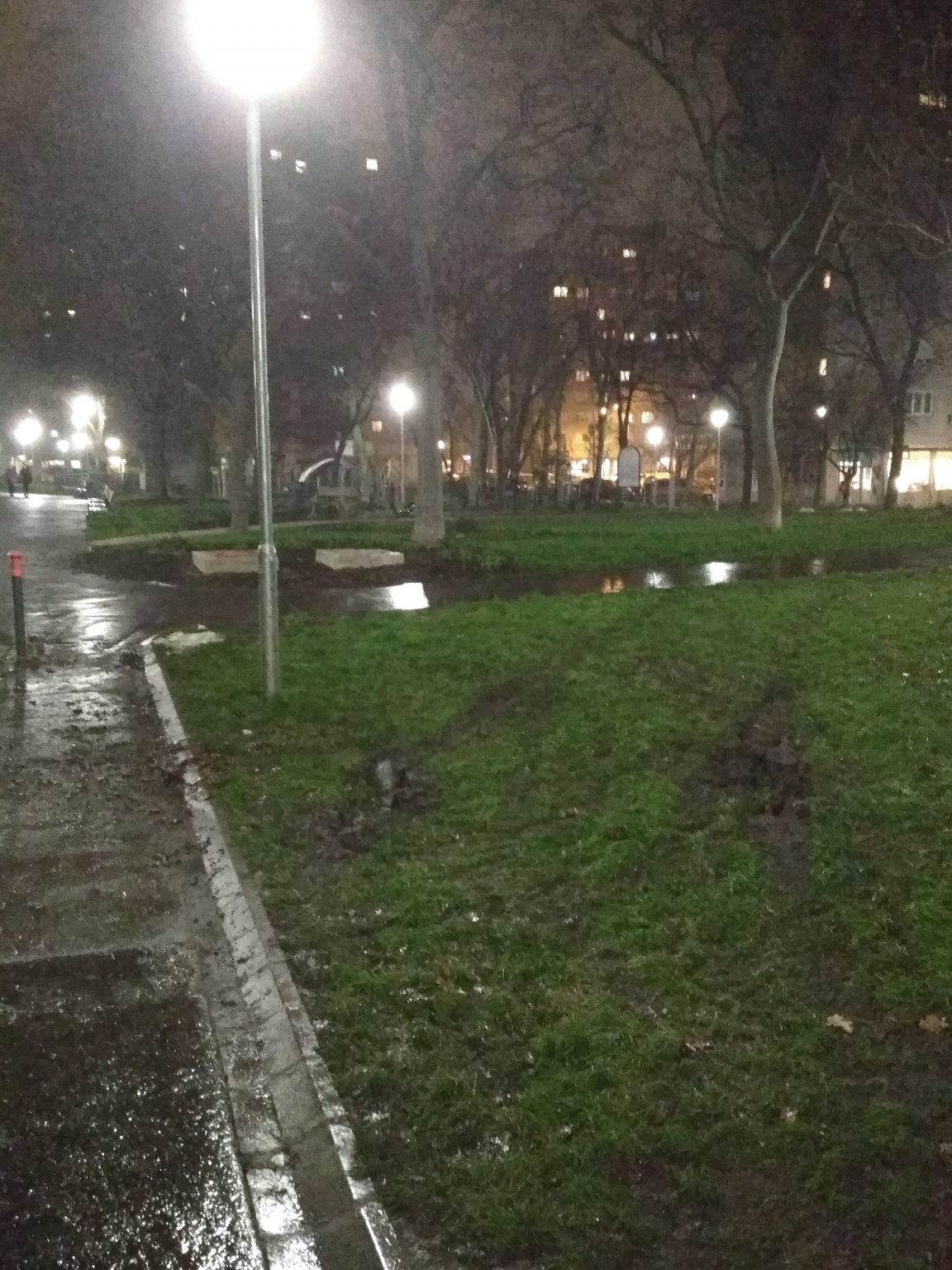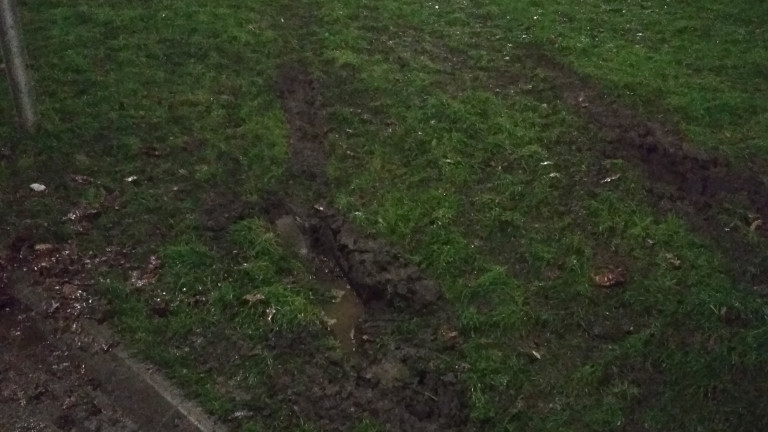 Az óbudai Nagy László ált. iskolat előtt a Holdudvar park füves területére hajtott egy autó, jócskán kitaposva a szép füvet, amit idén parkosítottak.
