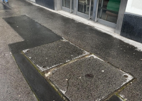 Újabb lukas csatornafedél, amiben bármikor kitörhet egy tűsarkút hordó nőnek a bokája. Ezúttal a Honvéd utca 10. előtt. A jelzés szerint a Matáv a gazdája.