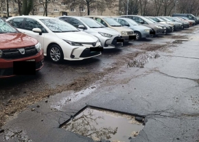 Kátyú az úttesten