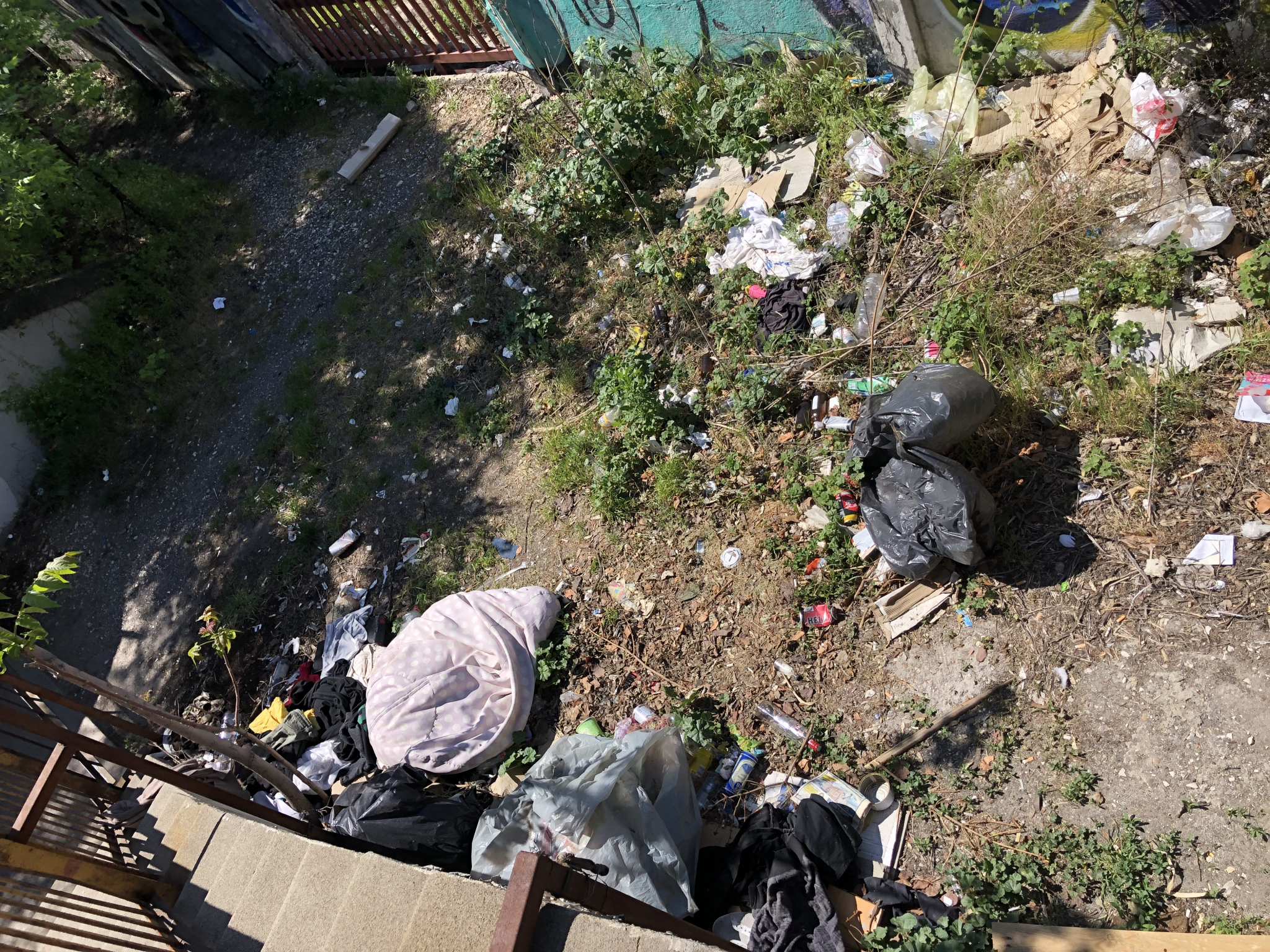 Ferdinánt felüljáró bejáratánál szokásos szemét halom, kérem ha lehet takarítsak el, sajnos már biztos megszokták az emberek, de azért járvány idején különösen ronda látvány.
