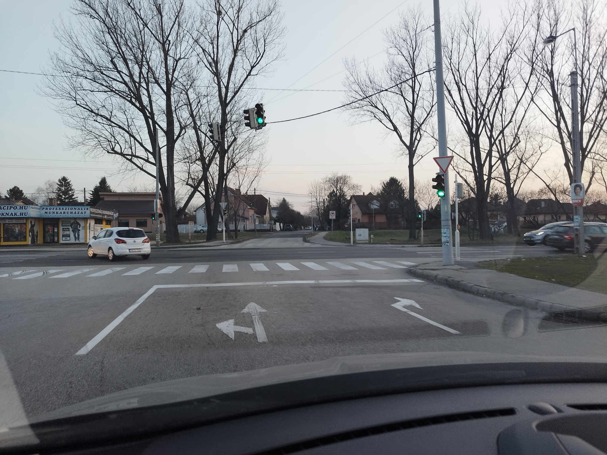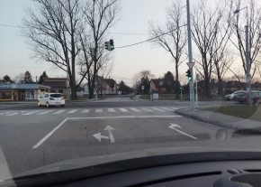 Adott keresztezodesben lekoptak teljesen az utburkolati jelek. 2 sav talalhato amibol nem egyertelmu melyik az egyenesen halado es a szembol jovoknek sem mindig tiszta a haladasi rend. Megallas helye es a gyalogatkelo sem latszik egyaltalan.