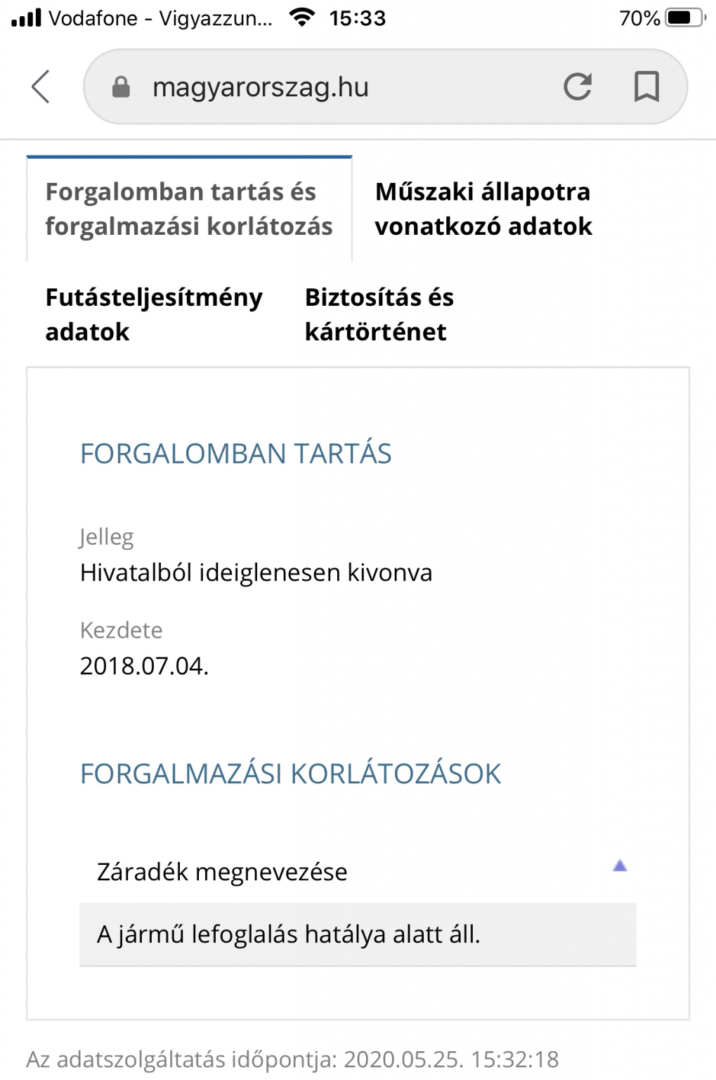 Az autó egy roncs, évek óta nem mozdult, ki van vonva a forgalomból, ráadásul lefoglalás hatálya alatt áll. Kérem az illetékesek segítségét a jármű közterületről történő ellszállításában. Fellelhető: Gvadányi utca 52-54. parkoló