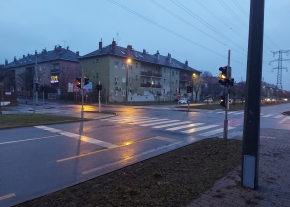 Dózsa György úton az Elektromos Művek épülete előtt kidőlt felhajtás gátló oszlop.