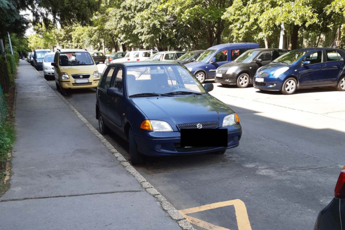 A Kele u. 9. (18. ker.) előtt már több hónapja áll ez mozgásképtelen (3 kereke le van engedve) Suzuki, elfoglalva a házban lakók elől a parkolóhelyet.