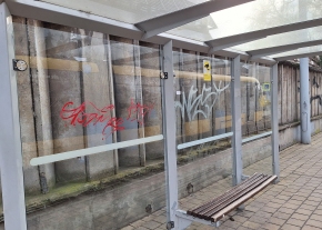 Kérem takarítsák le a graffitit a megálló oldaláról.( 212 es autóbusz megállója Újbuda felé)