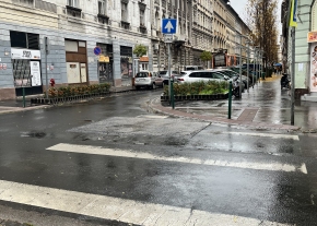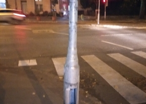 Deák Ferenc tér buszmegálló (Újpest felé M3 9-es) melletti sávelválasztó vonalon elhelyezett útburkolati prizmák hiányosak. Kérem a prizmák pótlását.