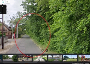 A térképen jelölt helyen olyan szinten belógnak a fák a járdára, hogy 6 éves kor felett csak hajlongva vagy limbó-üzemmódban lehet itt továbbhaladni.