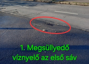XXI. kerület Betű utca Teller Ede út sarkon, a Betű utcából balra a Teller Ede útra kanyarodó sáv melletti padka víznyelői eldugultak, hatalmas víz állt a kanyarodósávban. Kérjük szépen a víznyelők tisztítását az érintett szakaszon.