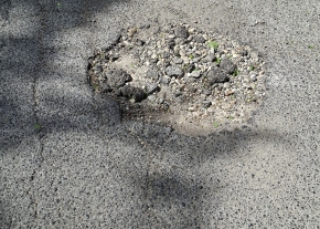 Kátyúk a piac hátsó bejáratánál.Az utca a piachoz tartozik.