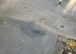 Hatalmas nagy "luk" a zebra mellett, a járdán