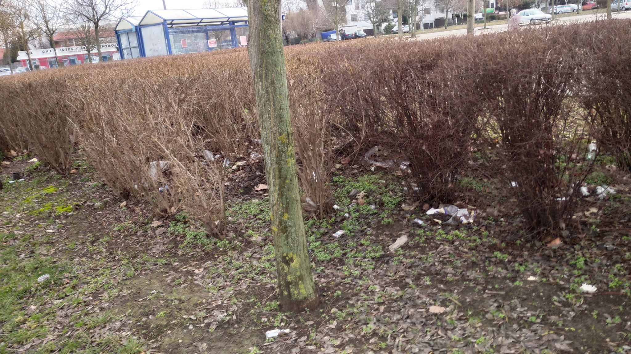Jelentem ugyanúgy tele van a bokor alja szeméttel. Érdeklődni szeretnék, hogy melyik napon volt a napi takarítás? Vagy ha ez a mindennapi takarítás igaz, akkor nagyon gáz, hogy egy nap alatt megint így néz ki a helyszín. És ez azt jelenti, hogy még a napi takarítás sem elegendő itt. A patkányok így sosem fognak eltűnni. Márpedig az köztisztasági veszélyt jelent. Épp ezért lenne jobb kivágni a buszmegállónál ezeket a bokrokat.