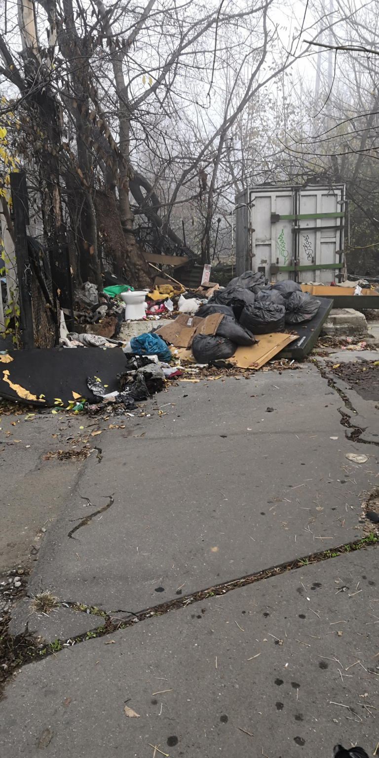 Az kerékpáros-gyalogos vasúti átjáró előtt az újpesti oldalon visszataszító szeméthegyek találhatók.