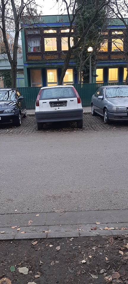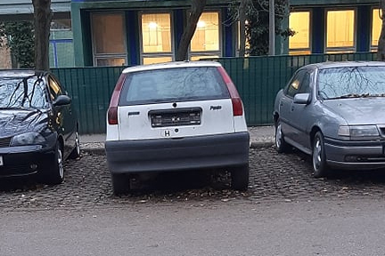 Rendszám nélküli Punto, a Hartyán óvodánál, az egyik ablaka is be van törve