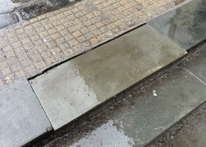 Nem történt meg a feltört járda újra burkolása, kb 2 hete igy áll