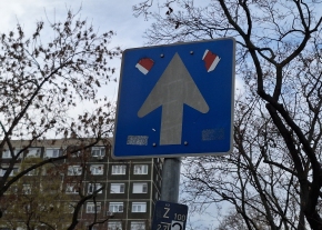 A Lázár utca 2. előtt össze lett firkálva a megállást tiltó tábla.