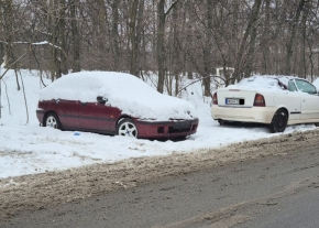 Bp 6. kerület Podmaniczky utca 37-tel szemközti parkolósávban a MÁV oldalon rossz állapotban lévő autó áll hetek óta.