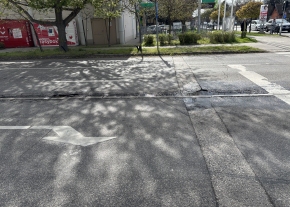 Nyilván avatatlan szem számára gyönyörű az útfelújítás. Viszont ha esőben járunk arra, akkor látható, hogy a pirossal jelölt területen összegyűlik az eső, tócsában megáll. Ez éppen pontosan a gyalogátkelőhely előtt van, ahol amúgy is erősen kell figyelni az átkelni kívánónak, hogy lássa, jön-e jármű. Pontosan az érkező, nem megálló jármű esőben ebben a tócsába fog belelemenni és beteríteni a gyalogost vízzel. Most még nem késő az változtatni ezen a helyzeten. Műszaki átadás előtt az kérdéskörre hivatkozva kérdőre lehet vonni a kivitelezőt, átvétel után hibás teljesítésre hivatkozva garanciális javítást lehet kérni (ha már meg lesz újra nyitva az út, ez nyilván egy kínosabb kérdés lesz).