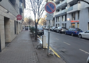 Véső utcában az irodaház táblával jelölt tűzoltási felvonulási területén szabálytalanul rakodóhelyet jelöltek ki. Kérem a rakodóhelyre utaló kiegészítő tábla eltávolítását, valamint a szegélyen lévő sárga szaggatott felfestés helyett sárga folytonos vonal készítését a megtévesztés elkerülése végett. Köszönöm!