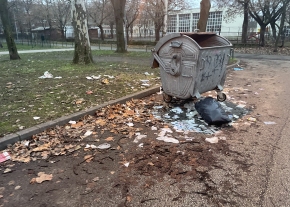 Folyamatos szemét a Posta kukája körül