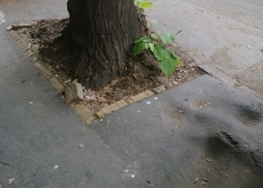 A gyökérzet felnyomta a lépcsőt. Sajnos maga a lépcső sincs már a legjobb állapotban. Kérem zárják le a lépcső szélét, hogy ne legyen belőle baleset! Köszönöm szépen!