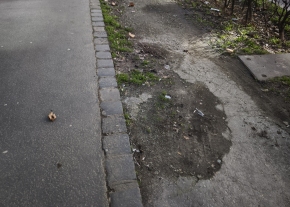 Az egykori közvágóhíd előtti zöldterületen több fa ki van száradva, illetve van egy kettétört fa is.